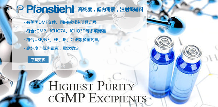 “熱烈祝賀Pfanstiehl的注射級甘氨酸Glycine(G-140)喜獲CDE登記號F20250000403, 這是Pfanstiehl產品獲得的第18個CDE登記號!”甘氨酸在醫藥輔料制劑中應用廣泛,, 可作為緩沖劑,增溶劑,穩定劑等,具有諸多優勢。Pfanstiehl秉承一貫高品質理念,為滿足全球生物制藥行業對于高品質甘氨酸的需求,隆重推出的注射級甘氨酸Glycine (G-140), 具有超高純度,超低內毒素,超低金屬殘留的特點,單獨檢測29種金屬離子,并且新增DNA,RNA,DNA酶,RNA酶和脂肪酶,亞硝酸鹽等多項質量指標的檢測,符合多國藥典規定(USP, EP, BP, JPE, ChP),可用于生物治療性藥物和疫苗的生產。產品信息:· 產品名稱:Glycine, High Purity, Low Endotoxin, Low Metals, USP, EP, BP, JPE, ChP (G-140)· 中文名稱:甘氨酸· 分子式:C2H5NO2· 分子量:75.07 g / mol· CAS號:56-40-6· 產品貨號:G-140產品特點: · 超高純度,超低內毒素,超低微生物含量,超低金屬雜質殘留· 質量指標新增DNA,RNA,DNA酶,RNA酶,脂肪酶和亞硝酸鹽檢測· 符合多國藥典:USP, EP, BP, JPE, ChP· 符合ICH Q3D標準· 符合GMP標準· 已獲DMF和CDE登記號 產品應用:· 緩沖劑· 穩定劑· 增溶劑如果您對Pfanstiehl注射級別Glycine G-140感興趣,歡迎聯系Pfanstiehl 中國區代理商北京西美杰科技有限公司獲得如下詳細的產品概況說明文件和測試樣品。Pfanstiehl Inc.最新產品系列如下,歡迎聯系北京西美杰科技有限公司獲取100g裝免費樣品。北京西美杰科技有限公司為Pfanstiehl中國代理,為客戶提供完善的技術支持與售后服務。歡迎撥打西美杰客服電話400-050-4006或者登陸網站www_xmjsci_com.hacker-li.cn了解更多信息。 更多>